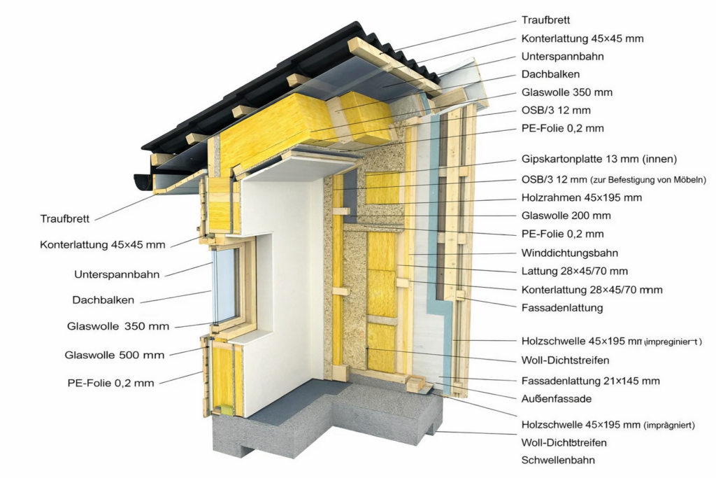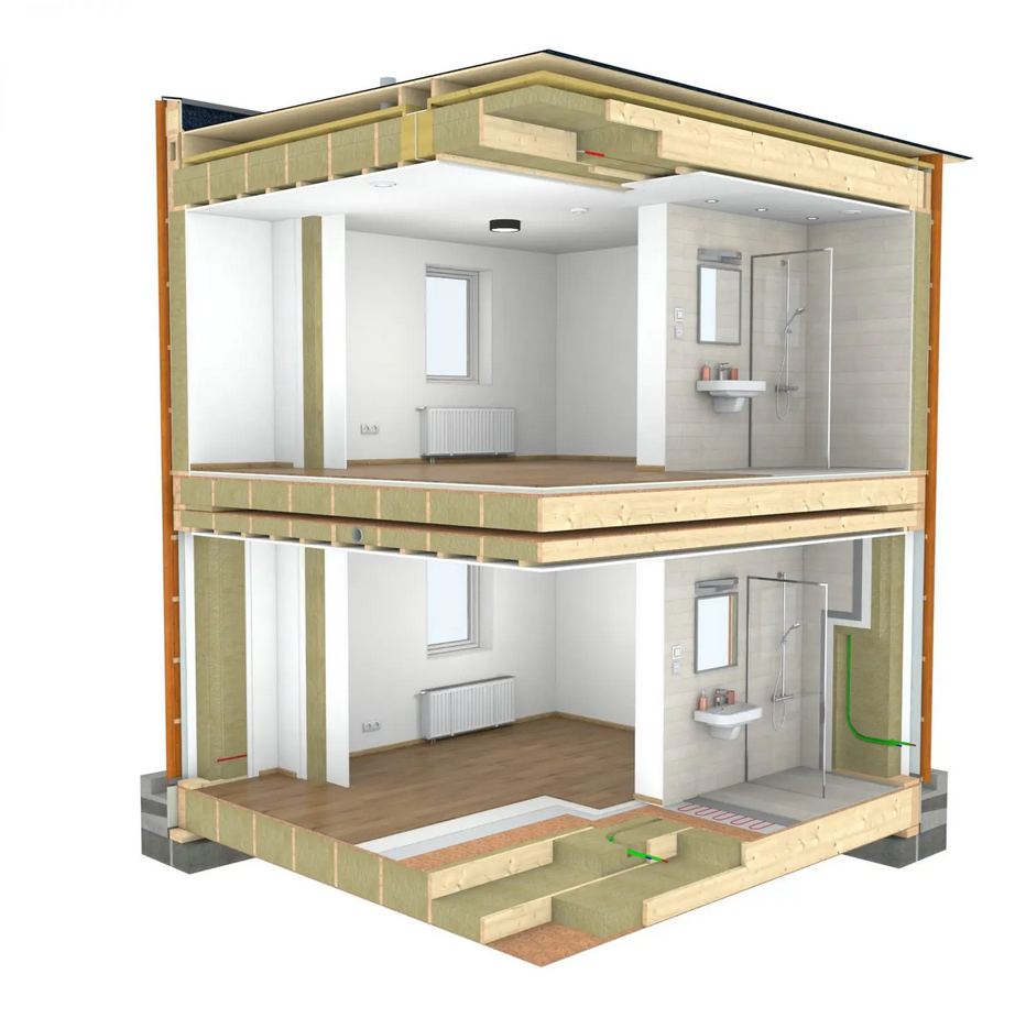 Tragstruktur, Gebäudehülle, Haustechnik und Innenausbau werden bereits im Werk vorbereitet.